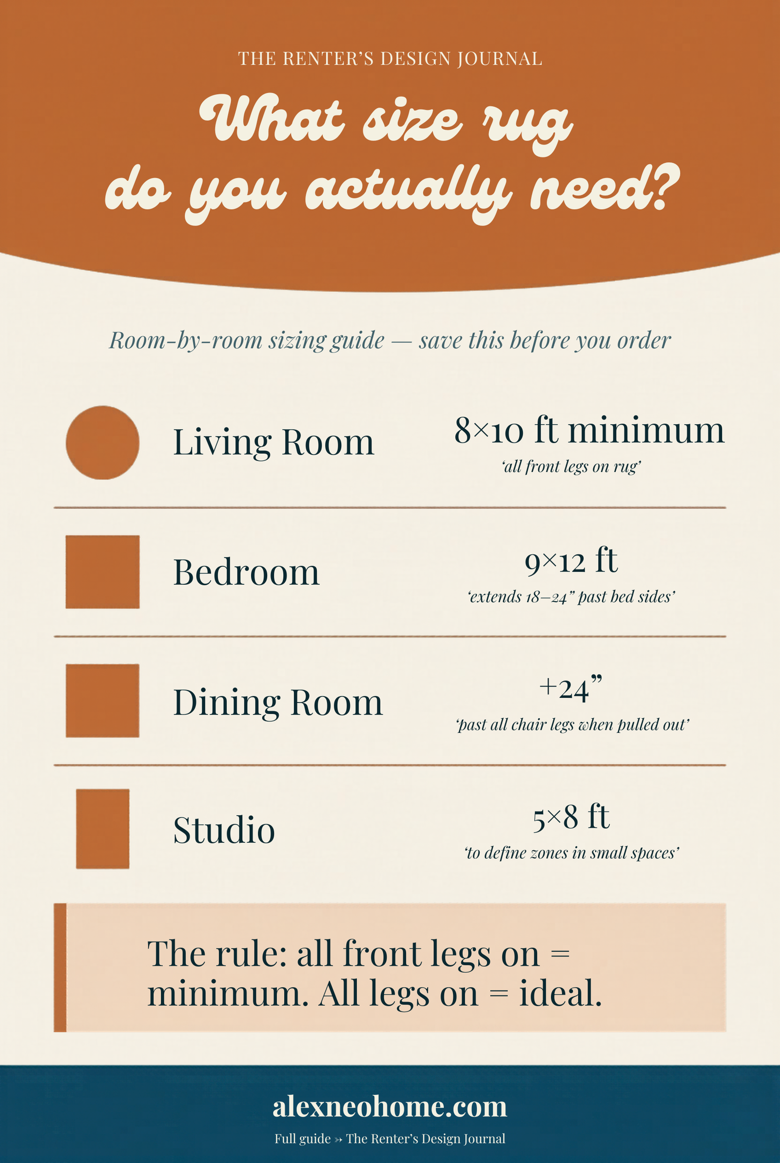 This is the most common decorating mistake renters make. Almost always a sizing problem, not a taste problem. The rug was probably fine. It was just too small.