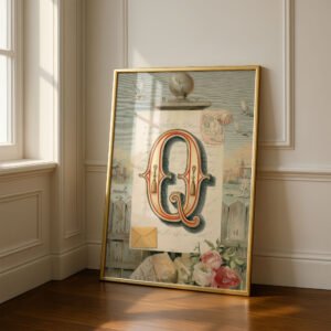 Letter Q Botanical Monogram Poster – Cottagecore Nursery Decor – Vintage Floral Alphabet Wall Art – Retro Typography