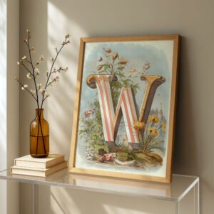 Letter W Vintage Floral Art Print – Victorian Garden Decor – Antique Botanical Monogram – Wedding Gift