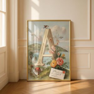 Letter A Vintage Floral Art Print – Victorian Garden Decor – Antique Botanical Monogram – Wedding Gift