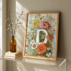 Letter D Vintage Floral Art Print – Victorian Garden Decor – Antique Botanical Monogram – Wedding Gift