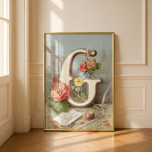 Letter G Vintage Floral Art Print – Victorian Garden Decor – Antique Botanical Monogram – Wedding Gift