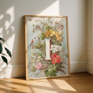 Letter I Vintage Floral Art Print – Victorian Garden Decor – Antique Botanical Monogram – Wedding Gift