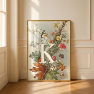 Letter K Vintage Floral Art Print – Victorian Garden Decor – Antique Botanical Monogram – Wedding Gift