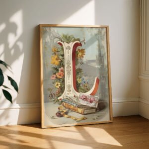 Letter L Vintage Floral Art Print – Victorian Garden Decor – Antique Botanical Monogram – Wedding Gift