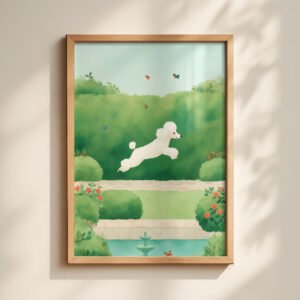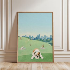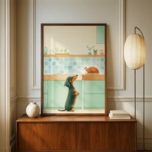 ✨ This whimsical dog art print is part of the HAPPY TAILS’ MOMENTS collection, a series dedicated to capturing the simple, quiet joys of a dog’s life.