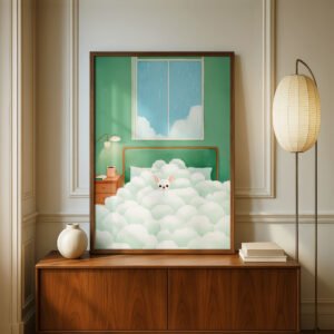 It’s made to sit naturally in home offices, studios, cozy corners, or any space where you want art that feels thoughtful, comforting, and quietly charming.