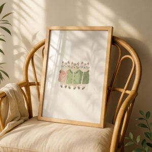 Each illustration features soft colors, gentle textures, and simple compositions, creating a calm yet cheerful aesthetic that fits beautifully in modern homes.