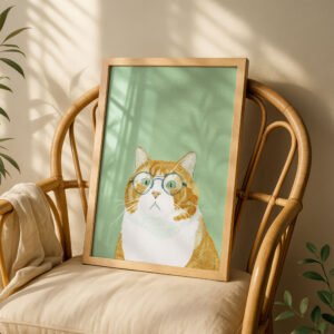 This funny sunbathing cat cat wall art adds playful charm to any space. Part of the Matcha Cats Club collection, this whimsical cat illustration is a must-have for cat lovers who appreciate quirky, feel-good decor.